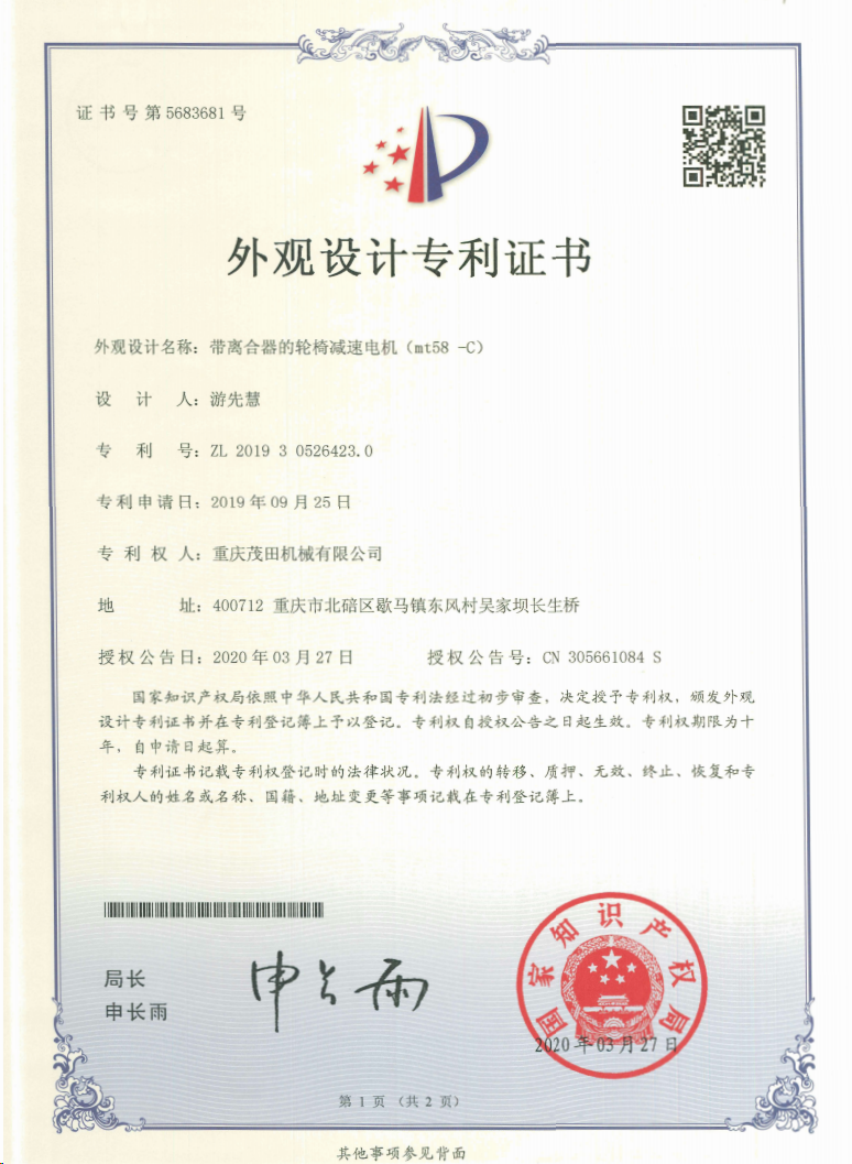 重慶茂田機(jī)械有限公司是國(guó)家級(jí)小巨人企業(yè)、國(guó)家高新技術(shù)企業(yè)、重慶市專精特新企業(yè)、重慶市知識(shí)產(chǎn)權(quán)優(yōu)勢(shì)企業(yè),致力于現(xiàn)代化山地農(nóng)業(yè)機(jī)械、各類非標(biāo)減速電機(jī)及其控制系統(tǒng)的研發(fā)、生產(chǎn)、銷售。擁有重慶市市級(jí)研發(fā)平臺(tái)1個(gè) 目前研發(fā)、生產(chǎn)、銷售產(chǎn)品廣泛應(yīng)用于農(nóng)業(yè)機(jī)械、醫(yī)療康復(fù)設(shè)備、交通代步工具、智能搬運(yùn)設(shè)備、以及機(jī)器人動(dòng)力系統(tǒng)等領(lǐng)域。我們的產(chǎn)品具有完整的自主知識(shí)產(chǎn)權(quán),擁有多項(xiàng)專利技術(shù)及“重慶